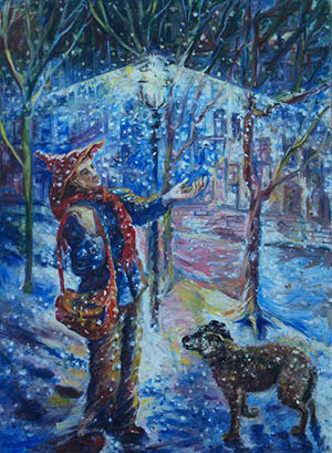 First Snow in Amsterdam. Oil on Canvas, 500 x 700