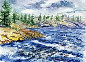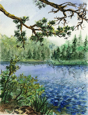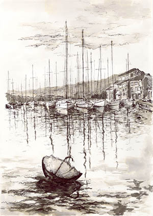 Lago Maggiore. Italy. Ink on Paper, 9 1/2 x 13