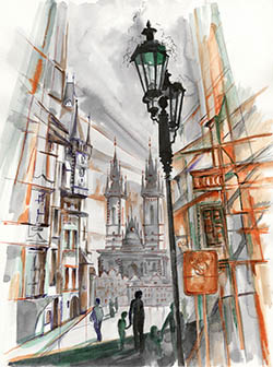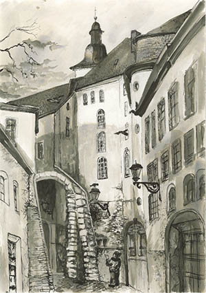 Streets Of Luxemburg. Ink on Paper, 11 x 14