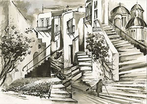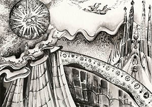 Barcelona, Spain. Ink on Paper, 9 1/3 x 13