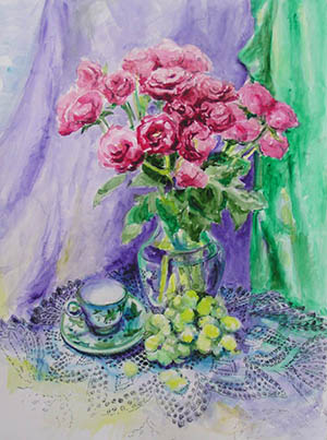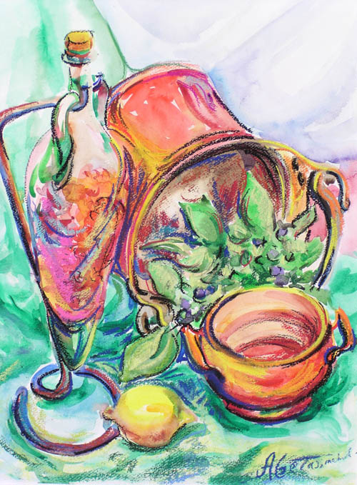 Still Life with Grapes. Watercolor, Ink. 18" x 24"
