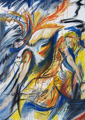 Blue & Orange Tango. Oil on Canvas, 35 x 25