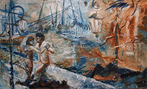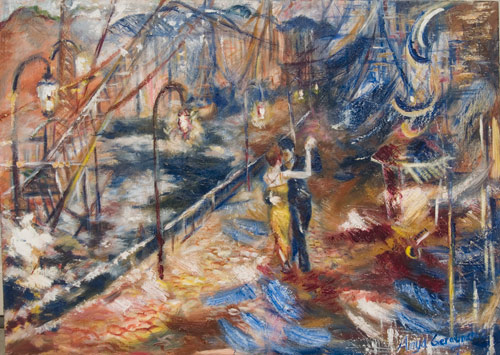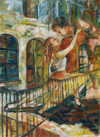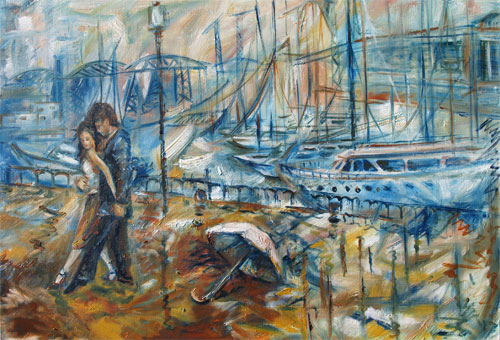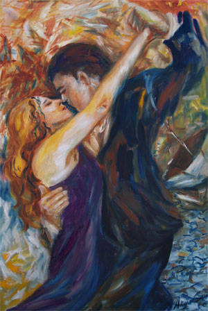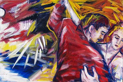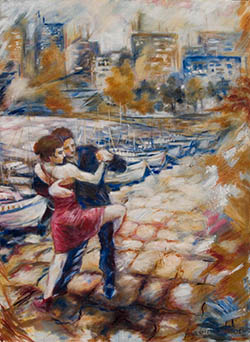 Tango Under Lamps. Oil on Canvas, 24 x 34