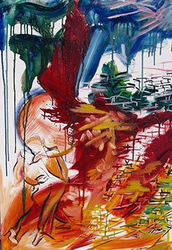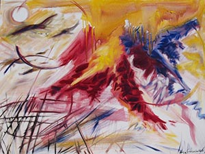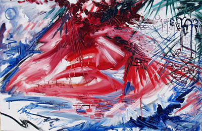 Red and Blue. Vase. Oil on Canvas, 21 x 31.